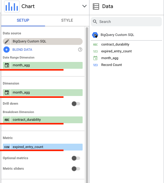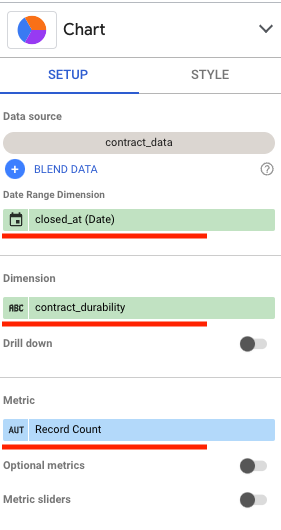 1. Choose closed_at as the Date Range Dimension and contract_durability as the Dimension